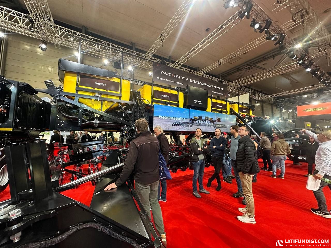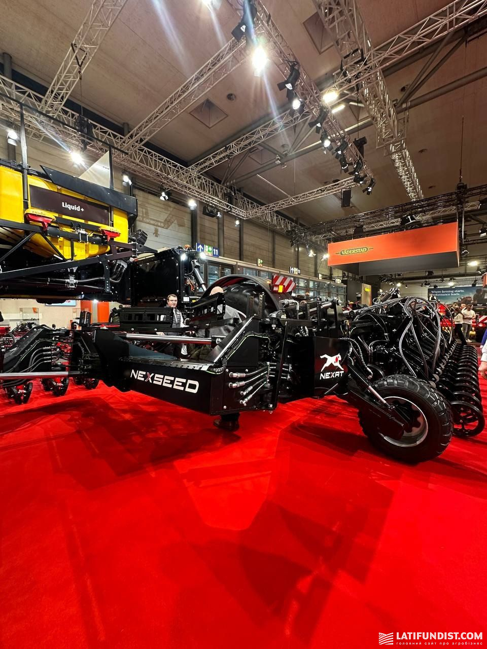 NEXAT продовжує розвивати свою концепцію системного трактора: на Agritechnica 2025 показали 28-метровий модуль прямого й точного висіву, який за один прохід може закладати до 72 рядків. Один модуль уже працює в Бразилії, інший після виставки вирушить до Канади — саме там компанія очікує найбільший попит.
