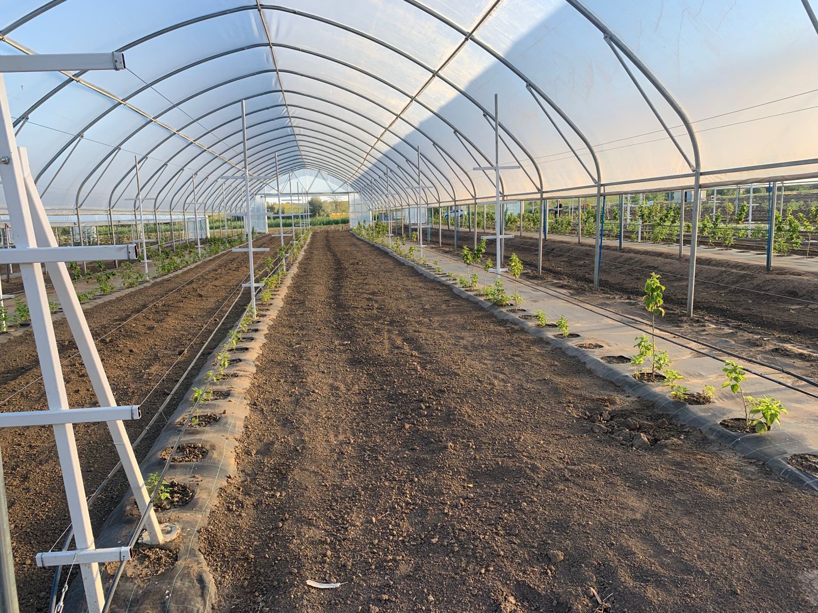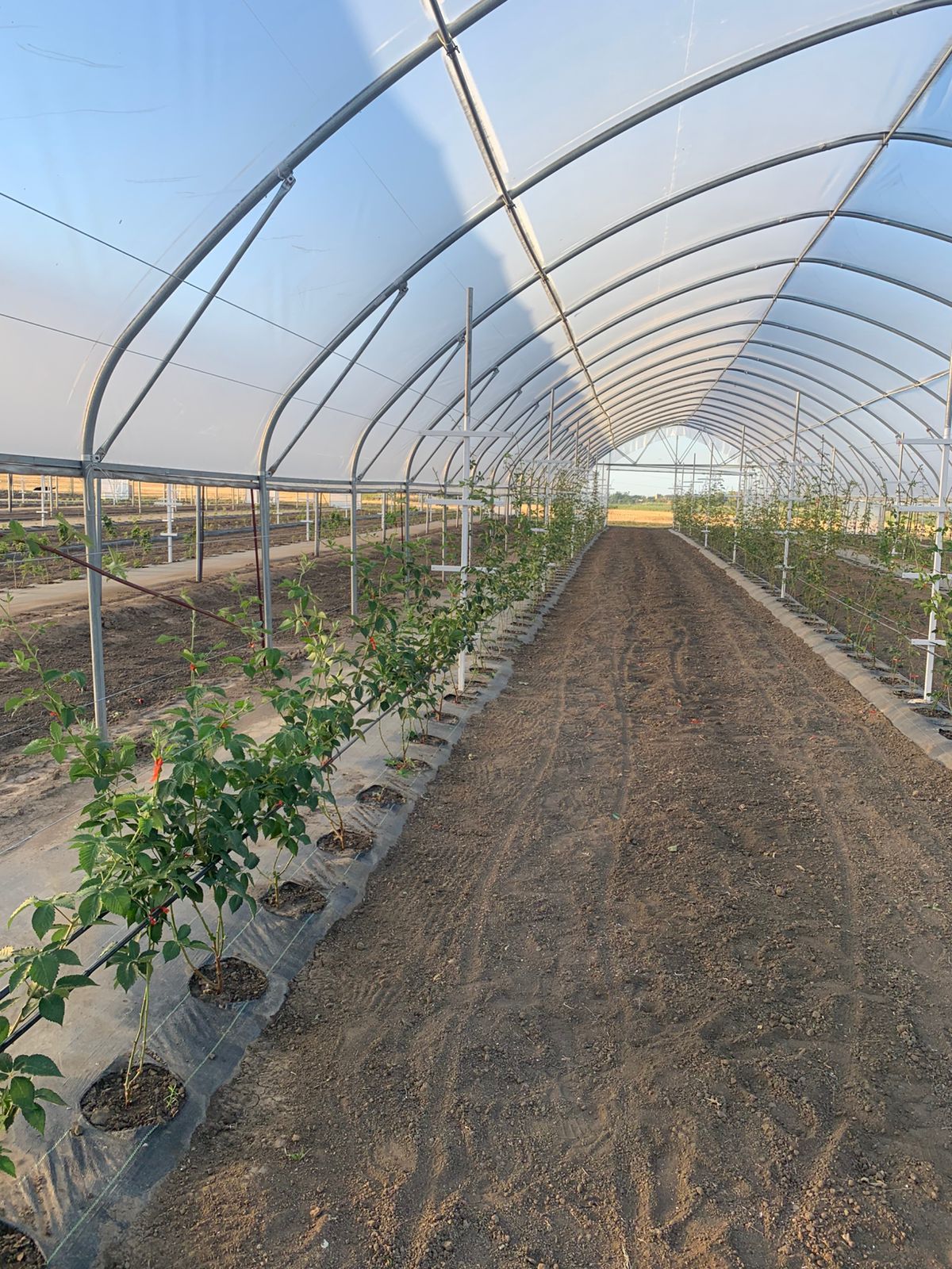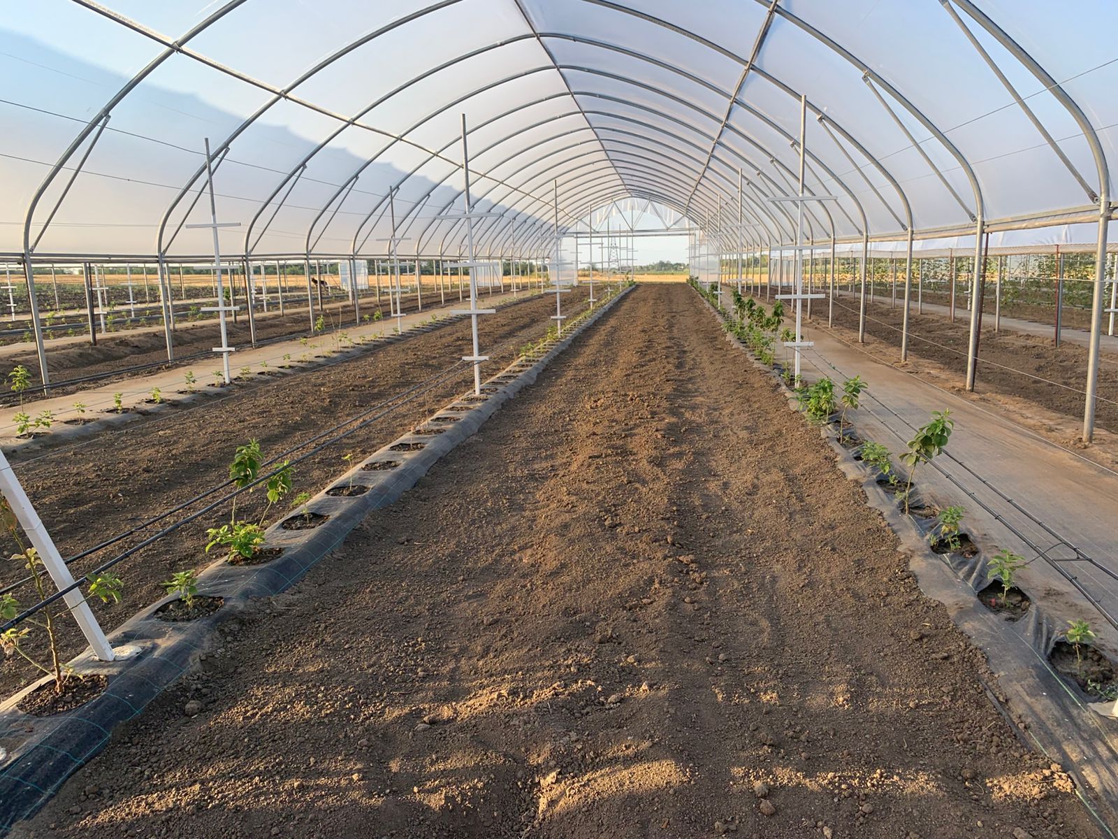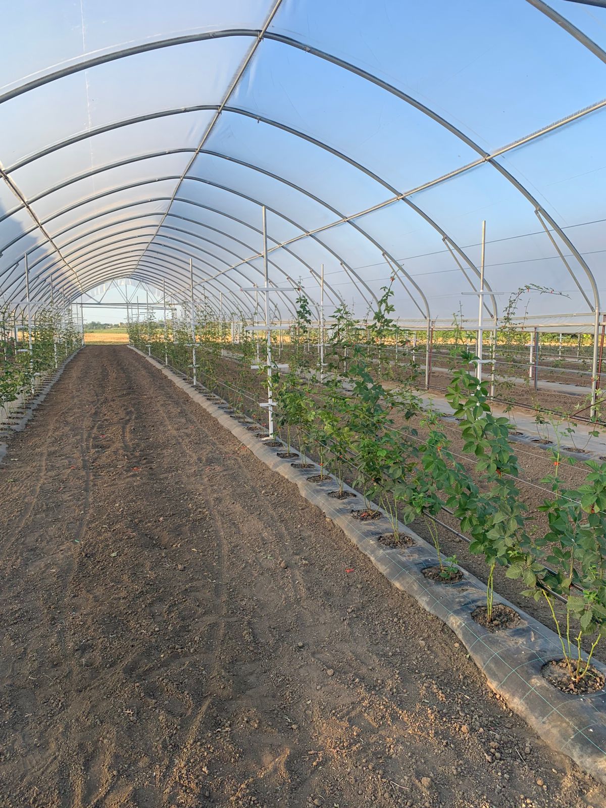 - вісім теплиць, з бічним провітрюванням, загальною площею 0,4 га, в теплицях ожина (4 теплиці) збір урожай у 2026 у травень-червень, малина (4 теплиці) у стадії формування плодоносних кордонів, підведено краплинне зрошення, встановлено