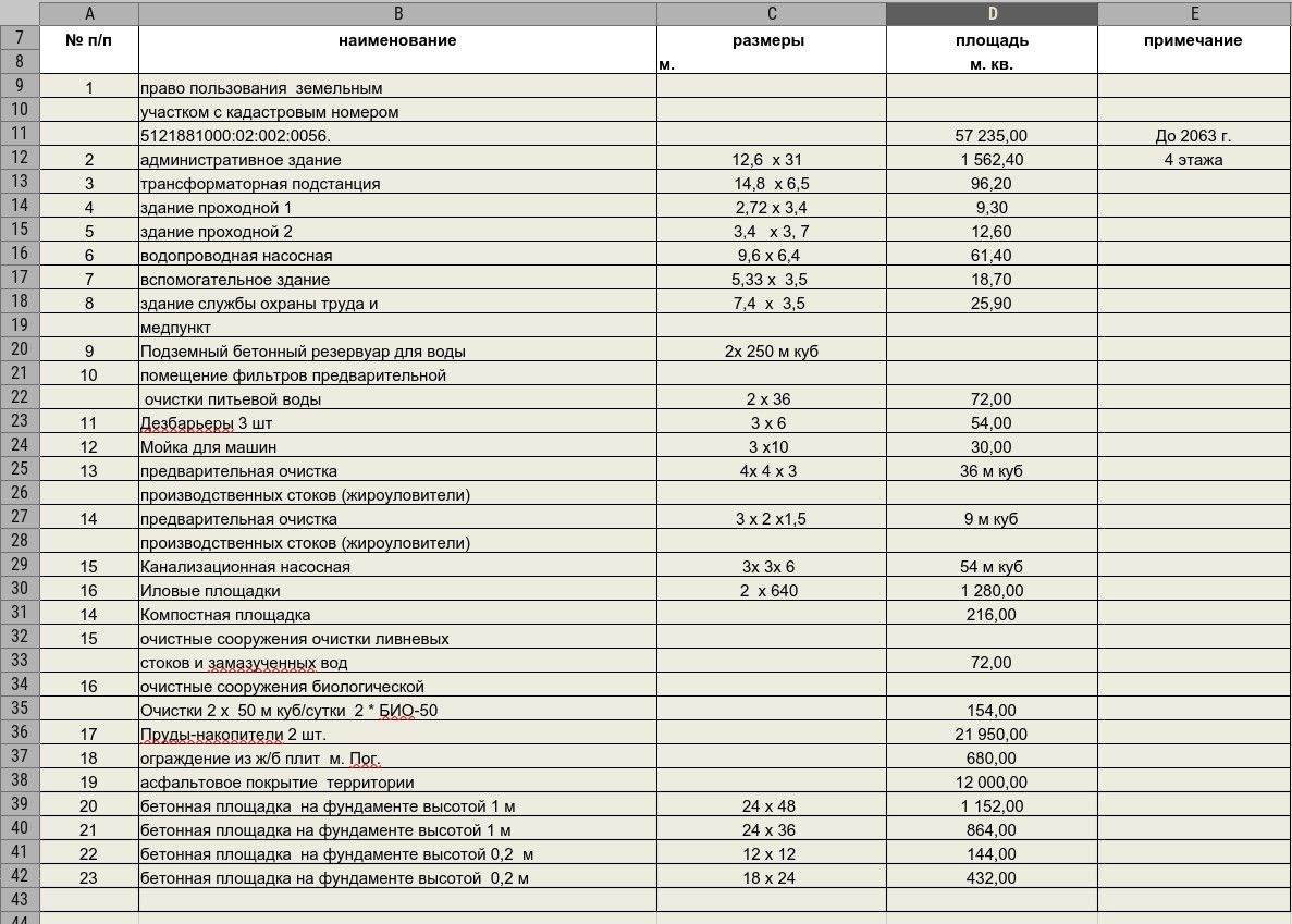Земельна ділянка, що займає виробничий майданчик, складає 5,735 га. Кадастровий номер ділянки 5121881000:02:002:0056.