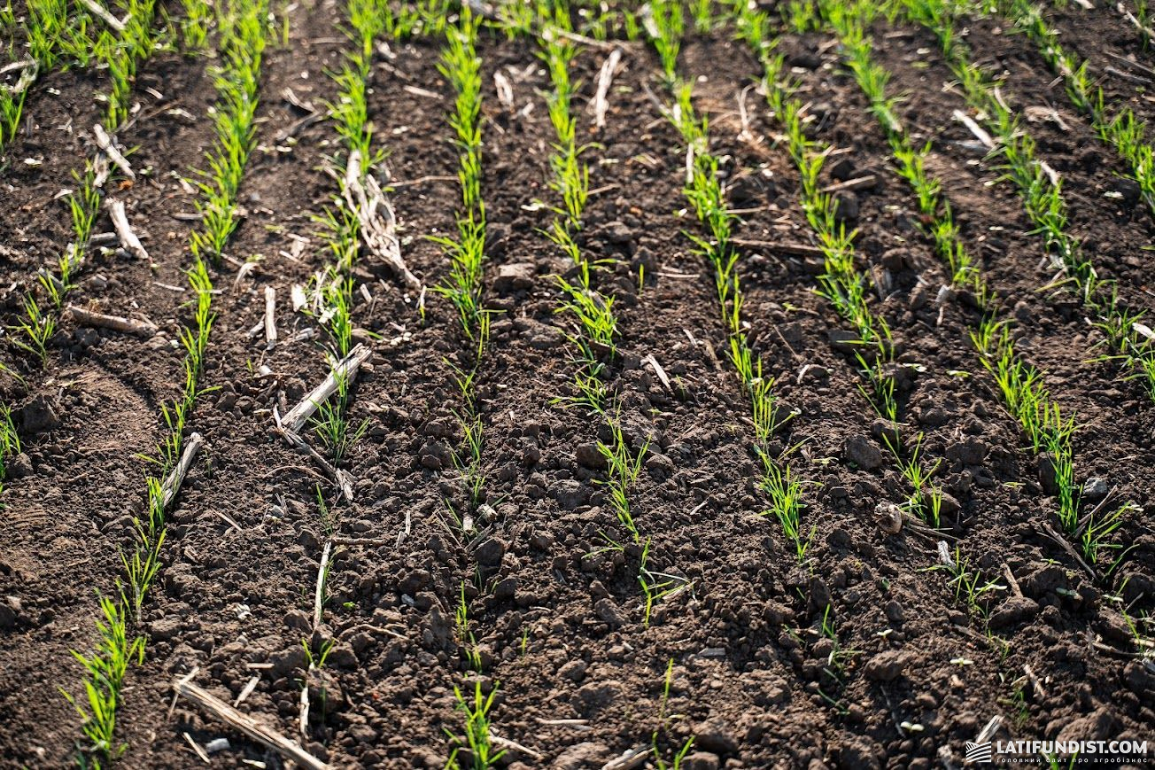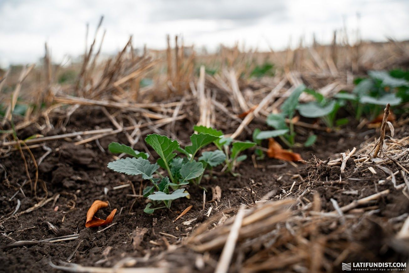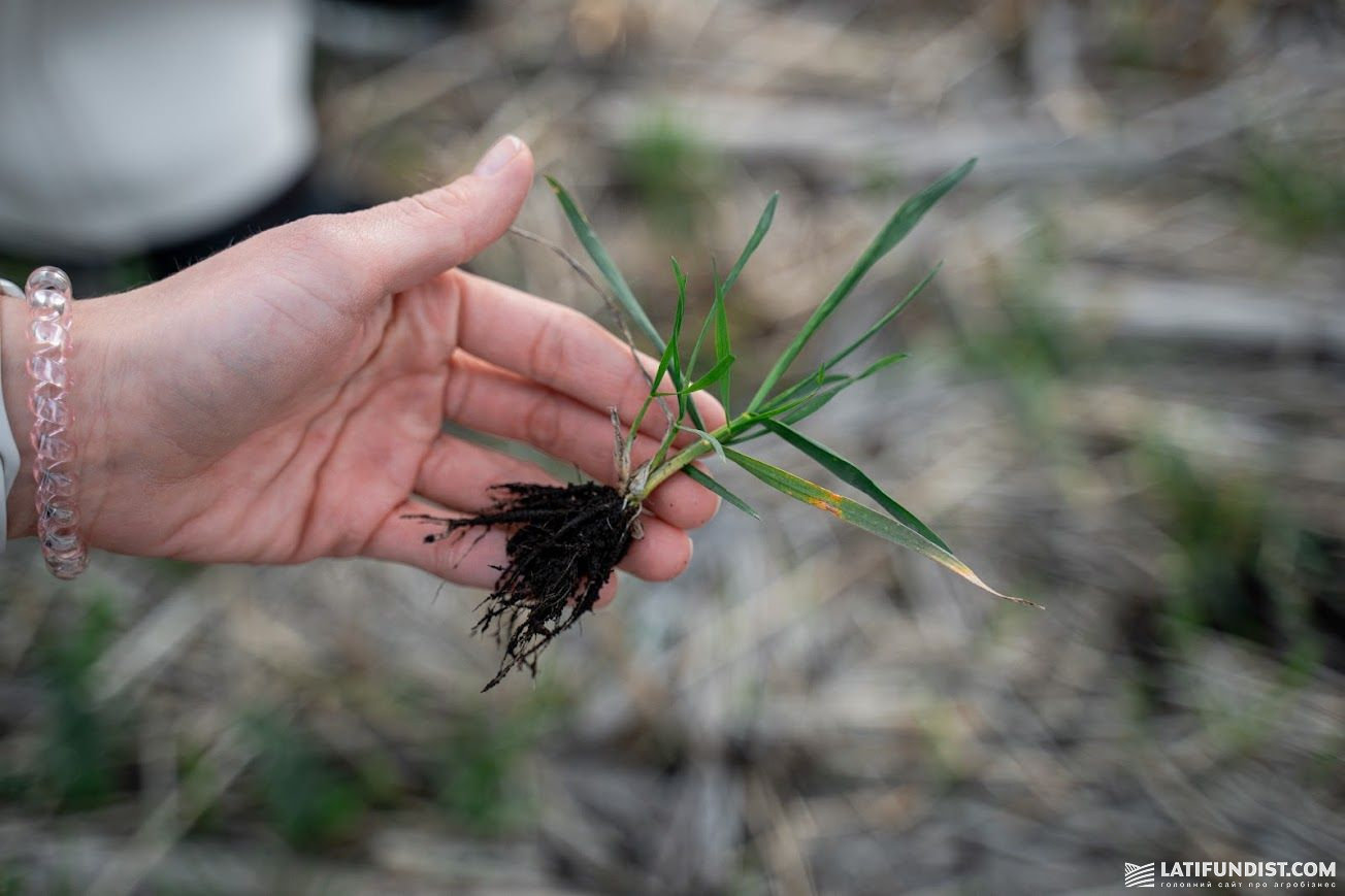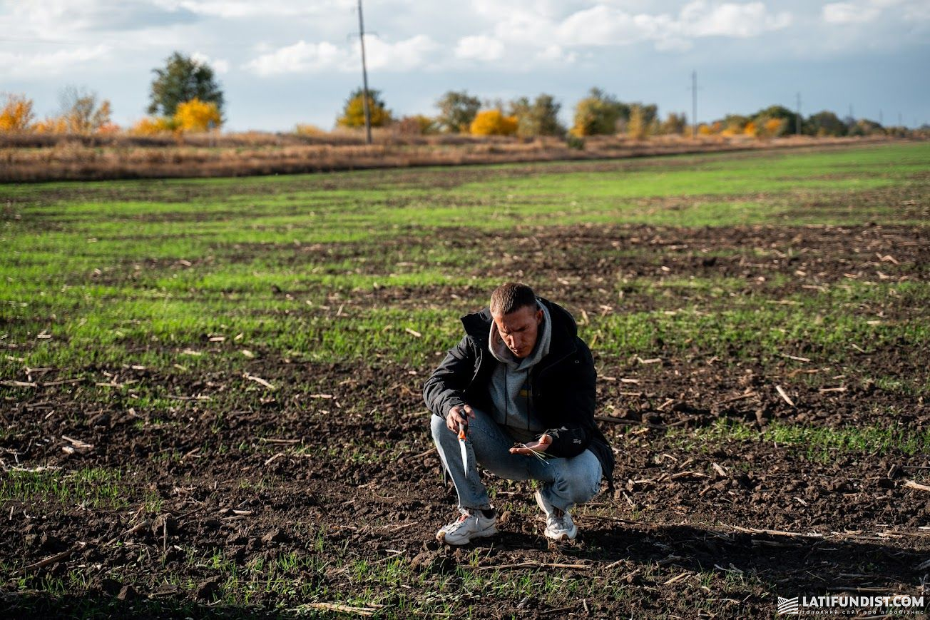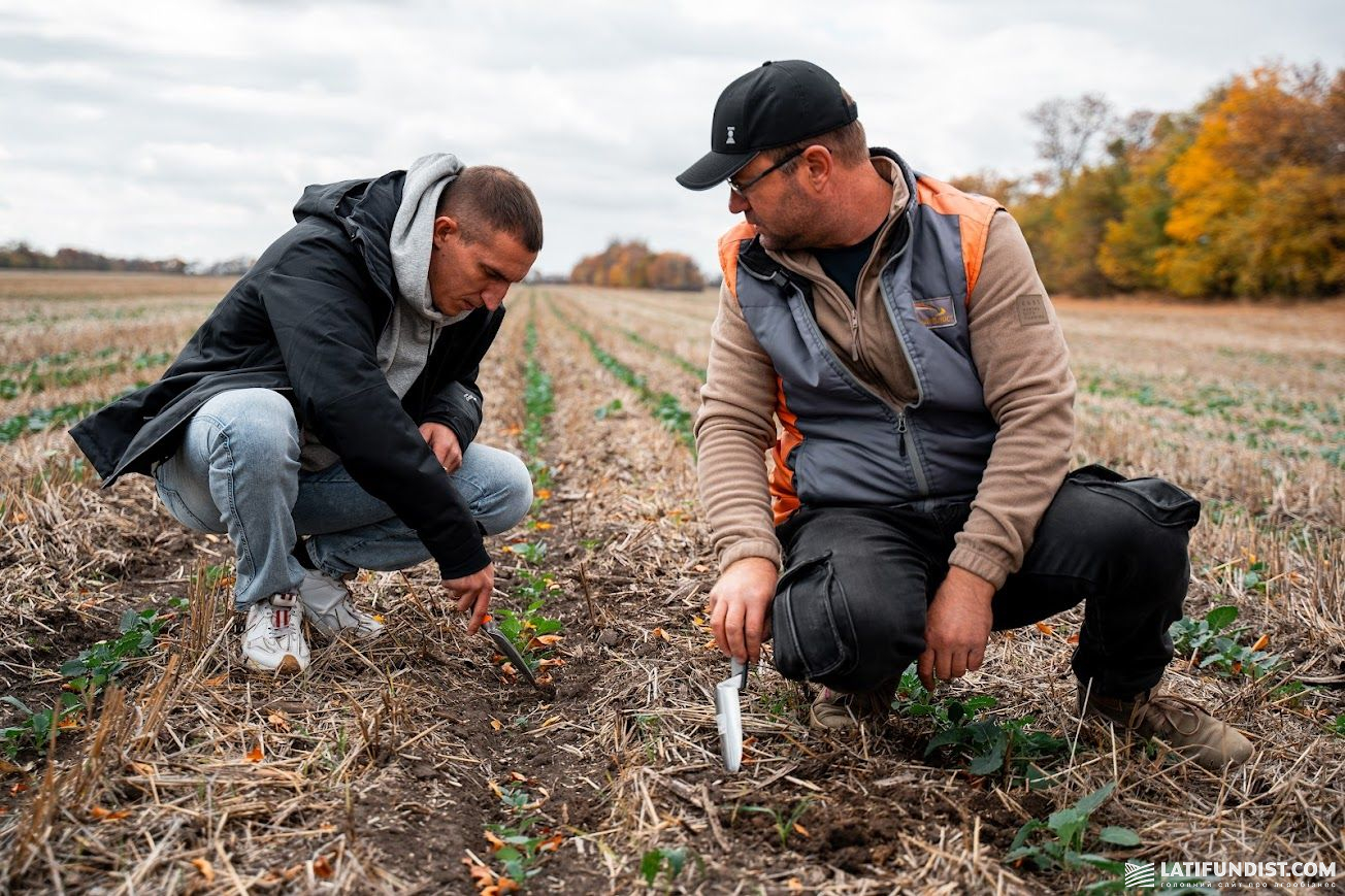 На полі, яке ми оглядали, випало близько 20 мм — цього вистачило, щоб отримати гарні сходи. Та далі знову настала посуха, рослини не набрали потрібних темпів росту, тому рістрегуляцію вирішили не проводити, зосередившись на контролі бур’янів. На глибині 30–40 см ще є волога, а за прогнозами, до листопада очікуються дощі, тож сподіваються, що температури вистачить, аби все ж провести рістрегуляцію.