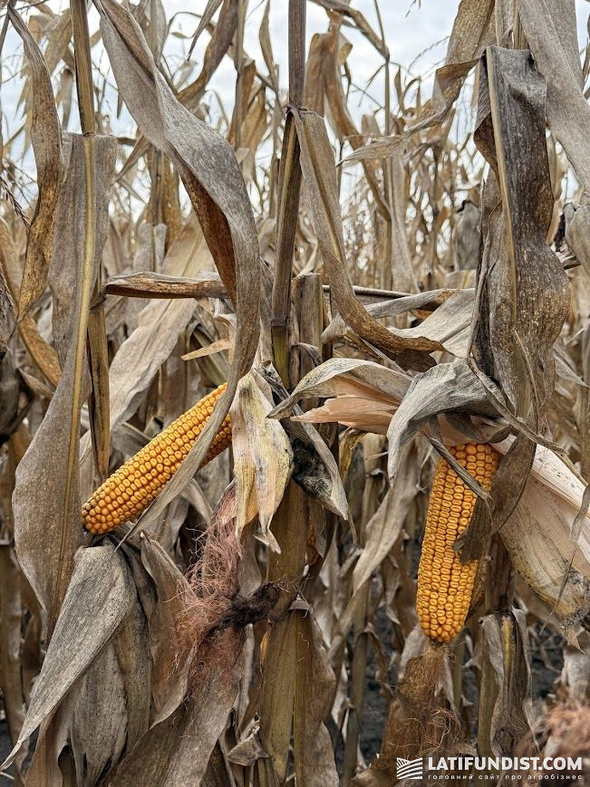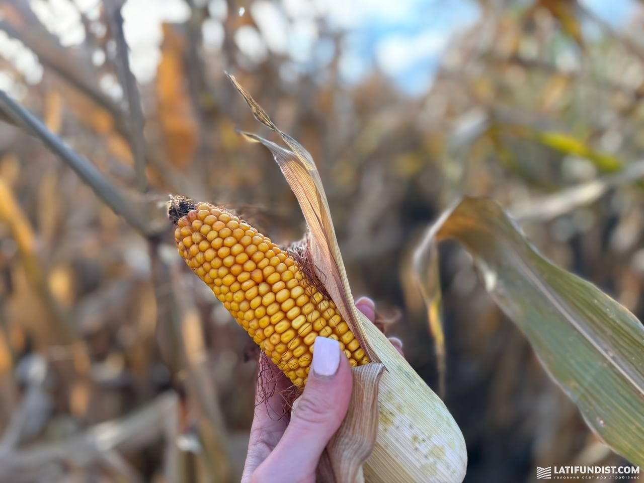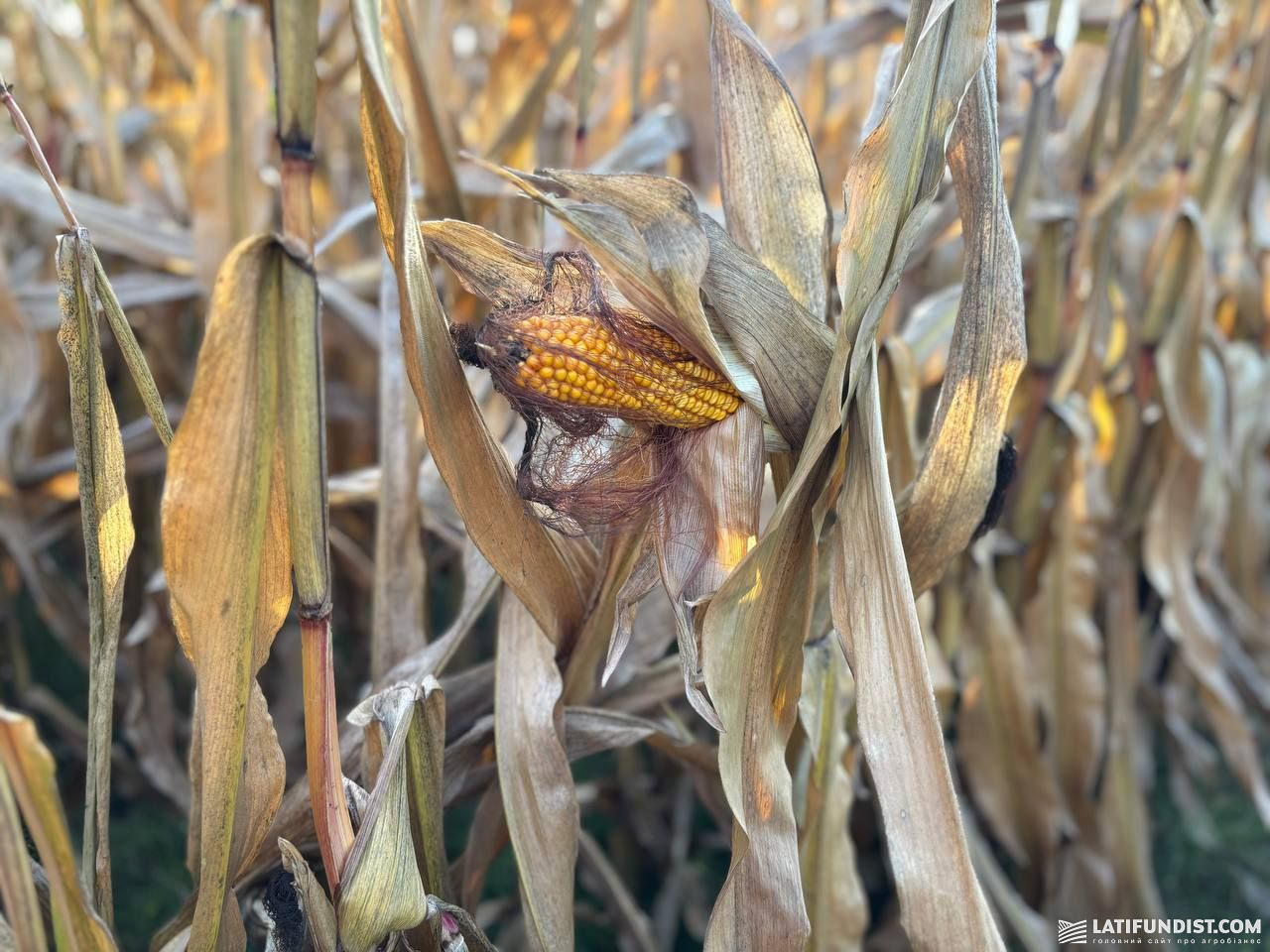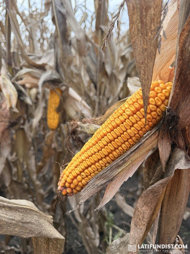 Кукурудза на момент нашого візиту (17 жовтня) ще стояла зелена: «ще три тижні гарантовано постоїть», каже головний агроном. Загалом під кукурудзою 139 га.