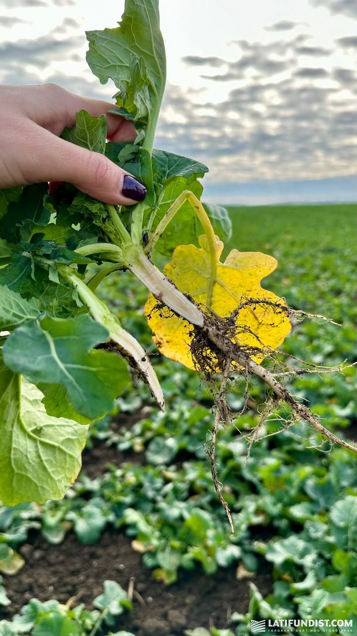 «Тут, ви бачите, теж було на грані. Але, я вважаю, що не в останню чергу завдяки професіоналізму людей, які тут працюють, усе вдалося так, як треба. Маємо поле в практично ідеальному стані — і густота, і контроль бур'янів, і загальний вигляд культури. Для таких промислових масштабів це, я б сказав, дуже близько до ідеалу».