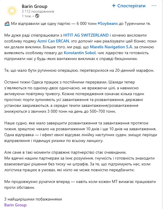 «Не можу сказати, що ми бачимо якийсь страх судновласників заходити в Україну. Якоїсь істерії через цю заяву саме на ринку фрахту не сталось. Єдине, кого це зараз турбує, це трейдерів, бо на них ця ситуація впливає прямо пропорційно»