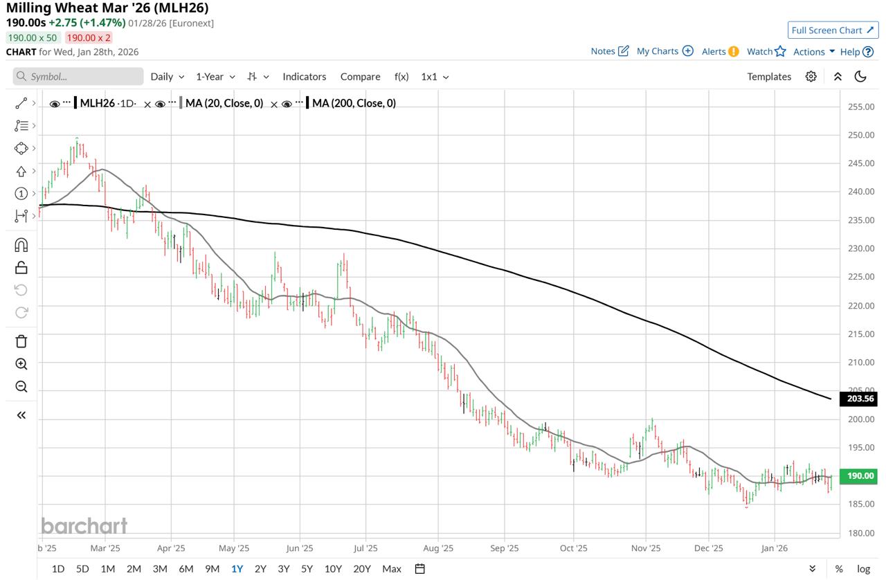 Weather risks failed to heat up the wheat market: Euronext futures are not settling above €190/t — ASAP Agri