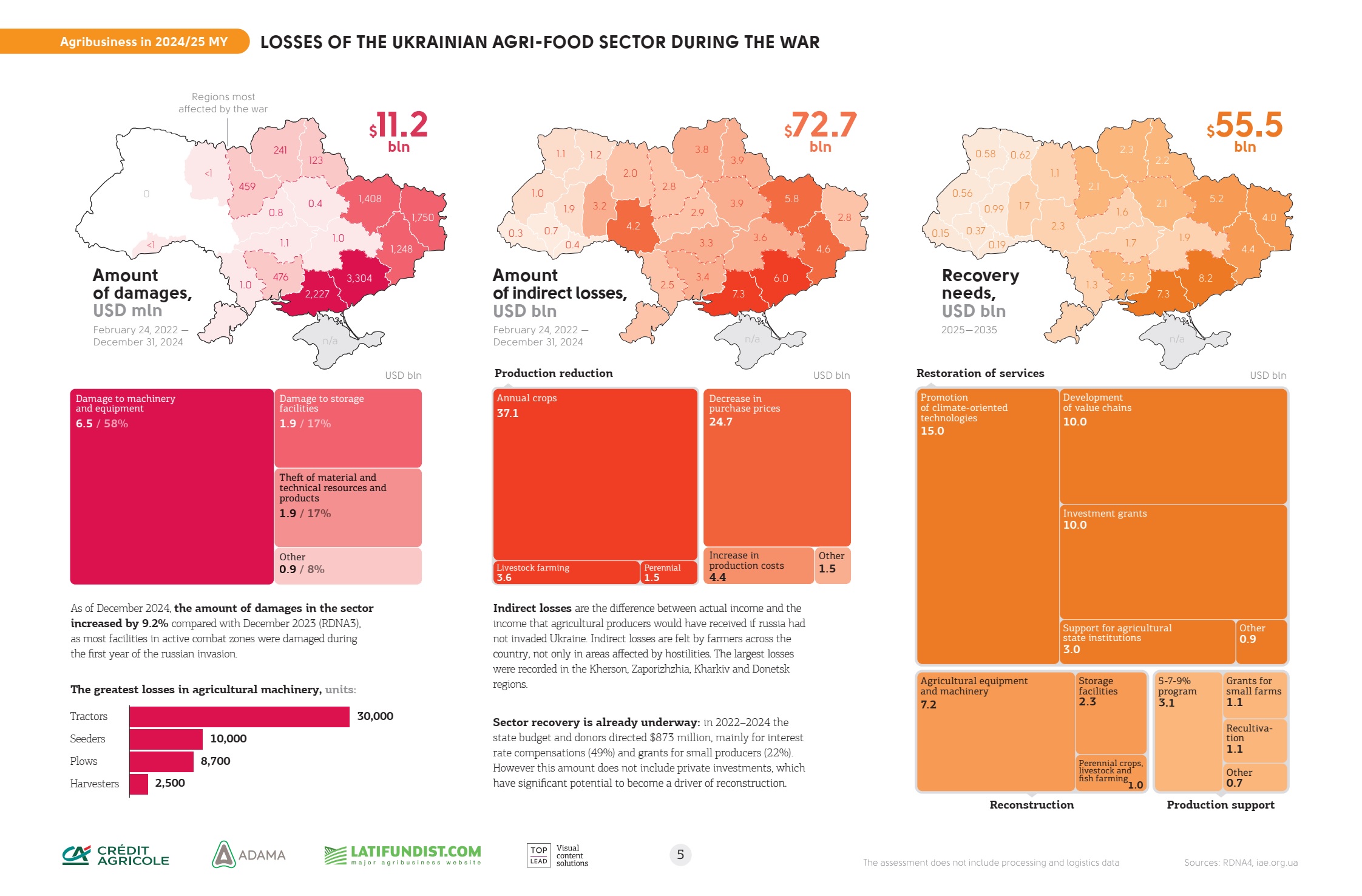 Ukraine’s agricultural sector will require more than USD 55 billion for recovery and reconstruction over the next decade, according to the updated Rapid Damage and Needs Assessment (RDNA5) released by the Government of Ukraine, the World Bank, the European Commission, and the United Nations.