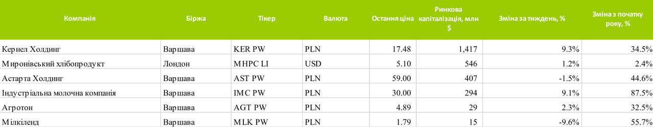 З 23 по 29 червня курс акцій українських агрохолдингів на Варшавській фондовій біржі переважно виріс.
