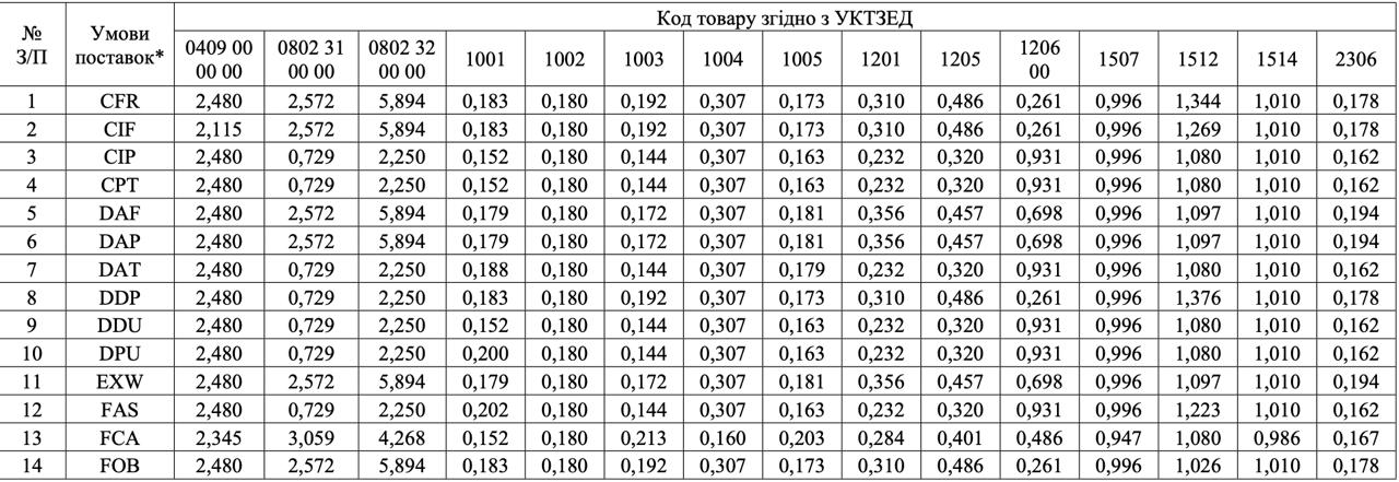 - CPT: із 0,171 $/кг до 0,163 $/кг (–0,008 $/кг).