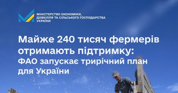 - Майже 240 тис. українських фермерів і сільських родин отримають підтримку в межах трирічного плану ФАО