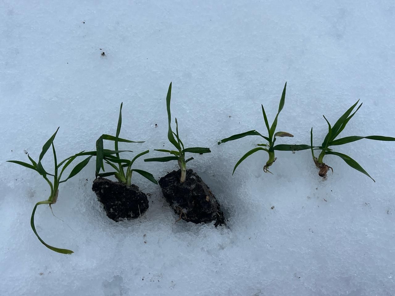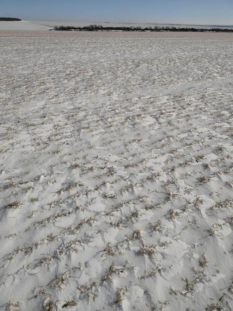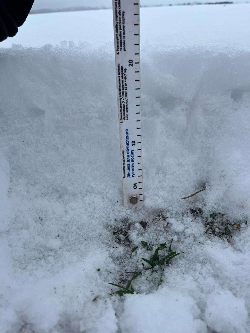 У Чернігівській області озима пшениця ранніх строків сівби сформувала життєздатний вузол кущіння та розвинену кореневу систему, сніговий покрив становить у середньому 20–35 см, суттєвих пошкоджень немає. У Харківській області сніговий покрив сягає близько 11 см, льодяна кірка — до 2 см, стан посівів контрольований.