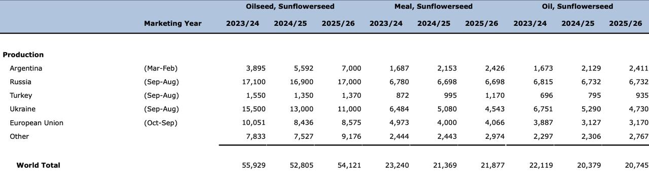 «Світове виробництво олійних культур цього місяця підвищено завдяки зростанню виробництва насіння соняшнику в Аргентині та Україні, попри зниження виробництва сої в Аргентині та Україні», — йдеться у звіті.