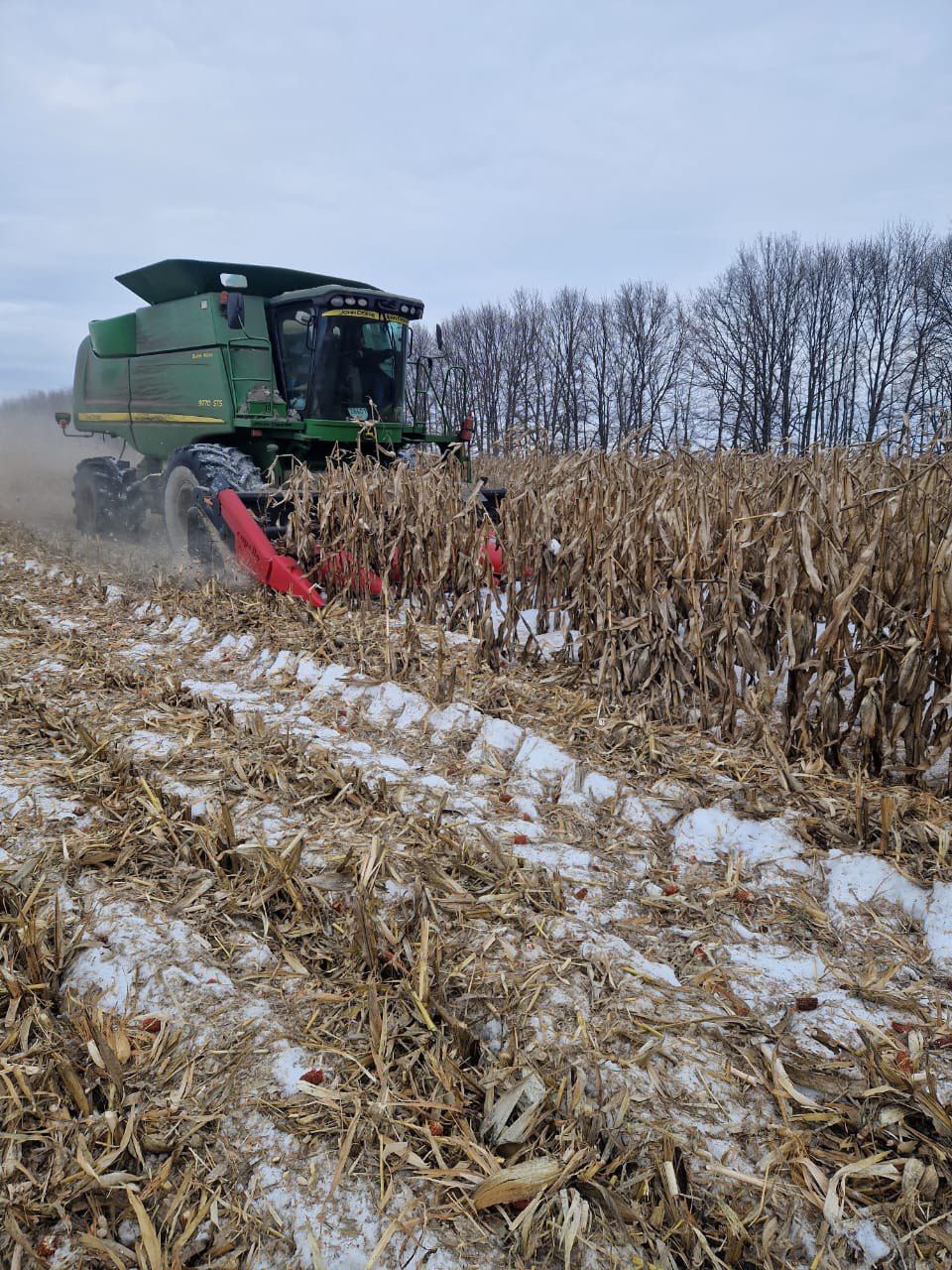 В сезоні 2022-2023 TG Agro вже залишали кукурудзу зимувати. Тоді збір розтягнувся з грудня до березня, але в полі не було стільки снігу, і техніку епізодично вдавалося заводити на поля. В результаті кукурудзу зібрали з вологістю 20-22%. Втрати врожаю були дуже великі — кукурудза погано зимувала через хвороби, які розвинулись восени 2022 року.