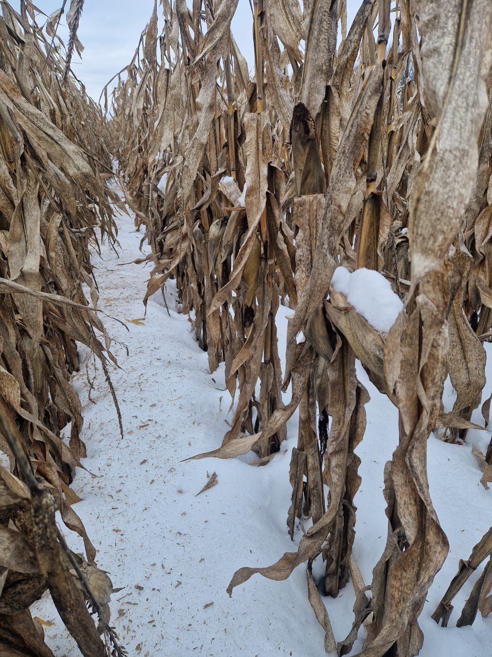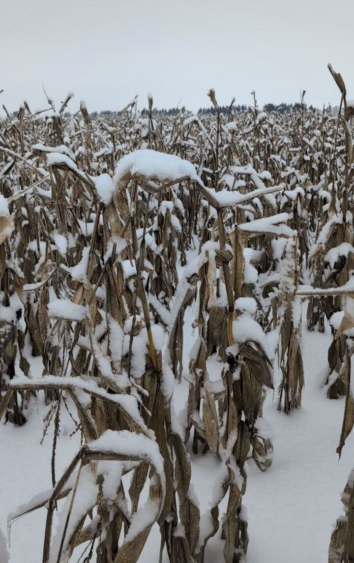 Незібрана кукурудза залишається візуально в задовільному стані, полягань немає. Зараз в качанах близько 20% вологості, після обмолоту на зерносушарці очікується 22–24%. Сніговий покрив сягає 30–40 см, що сильно ускладнює доступ техніки на поля. Тому поки неможливо прогнозувати, коли вдасться її дозбирати, пояснює керівник господарства.
